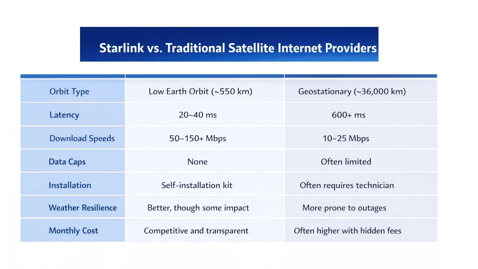 Unlike older satellite services that rely on a small number of satellites far above the Earth, Starlink operates thousands of satellites in low Earth orbit, much closer to the ground. That difference matters in real use. The shorter distance reduces delay and makes the connection feel more like standard broadband rather than a last-resort satellite link.